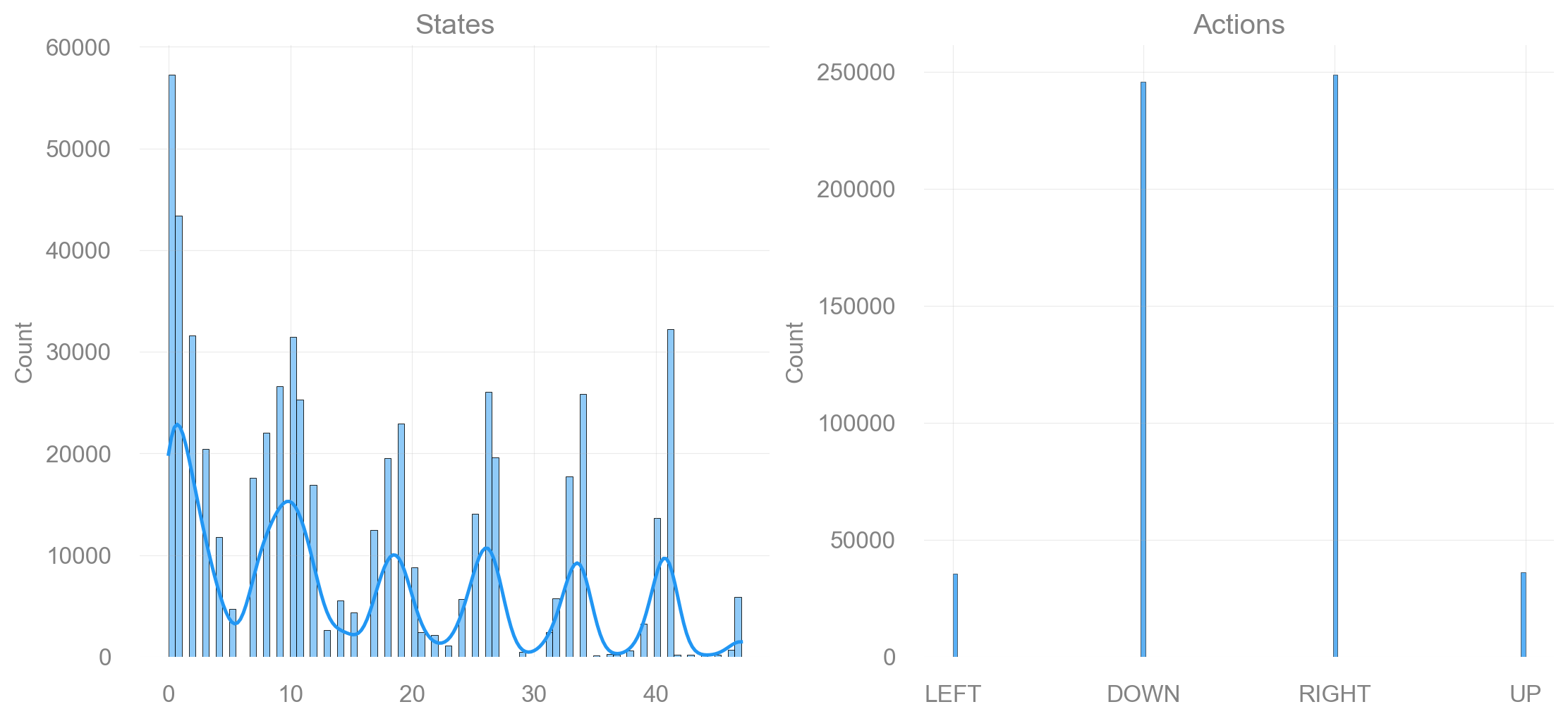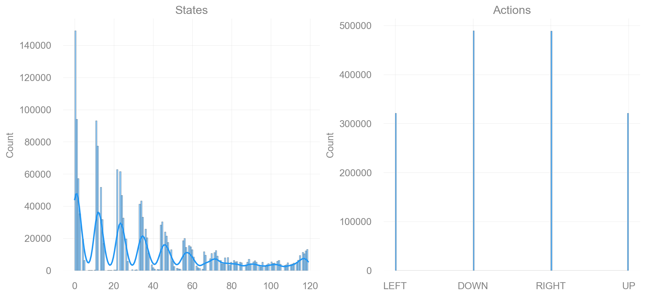 return fig, axdef plot_states_actions_distribution(states: list[int], actions: list[int], map_size: int):